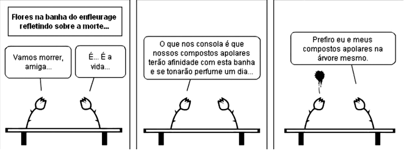 Tirinha criada por um grupo de alunos da Escola Estadual Eneida Rabello sobre os conceitos de química debatidos em sala. A ideia da atividade foi proposta pelos próprios estudantes e desenvolvida por meio do ‘site’ Strip Generator, que permite a criação de histórias em quadrinhos ‘on-line’.
